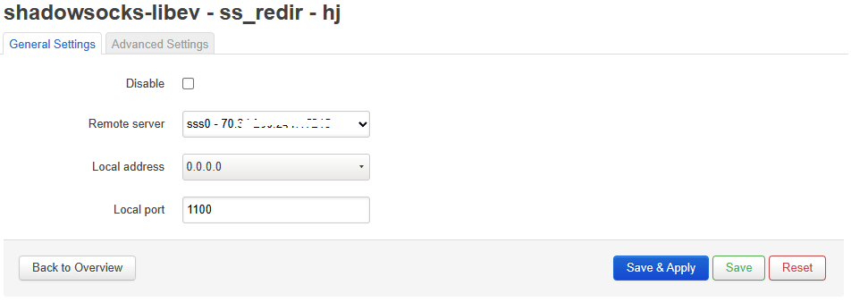 Check that ss-redir for TCP and UDP matches the previously selected item (hj, hi or the one you created)