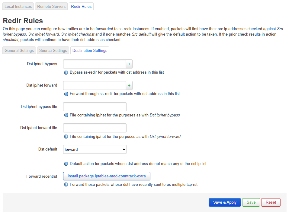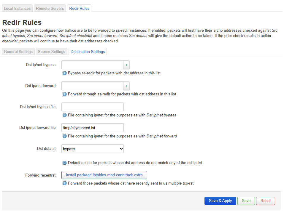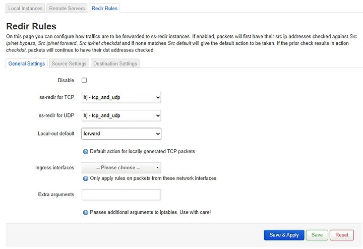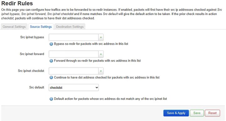 To fix it, you need to go to the Services section – Shadowsocks-libev – Redir Rules – General Settings