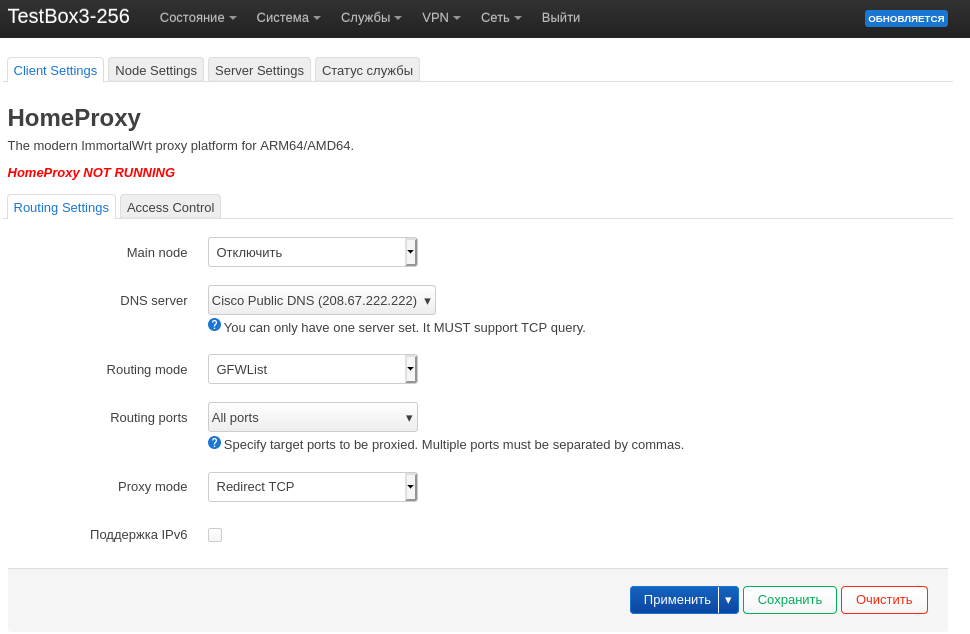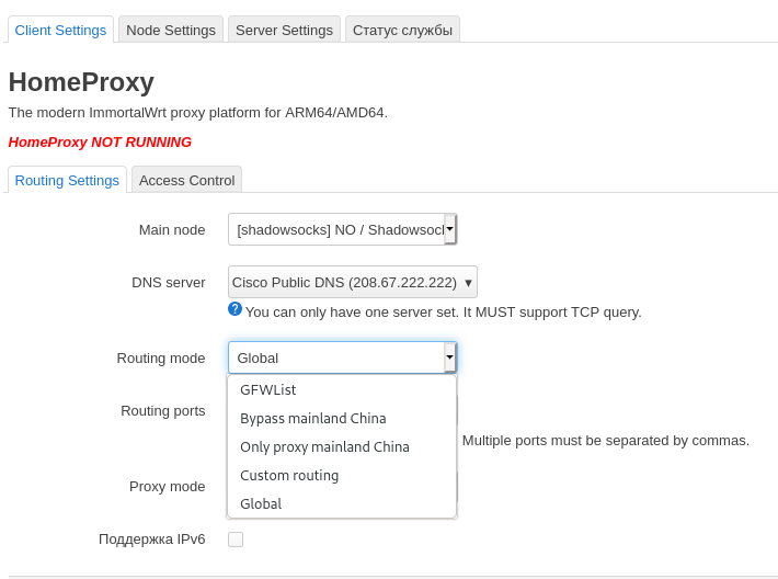 Поддержка IPv6 — по умолчанию выключена, при включении могут быть сложности с обходом блокировок, т.к. списки BGP и Access List в первую очередь ориентированы на IPv4, поэтому включайте на своё усмотрение.