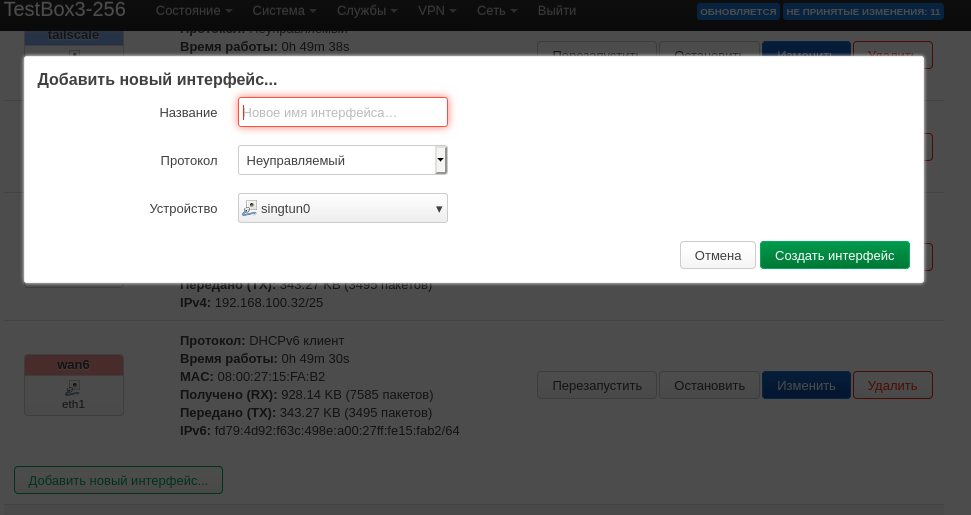После чего перейти в настройки интерфейса singtun0 (Изменить)