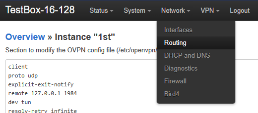 Вносим изменения в конфигурацию клиента OpenVPN, на примере LuCI.