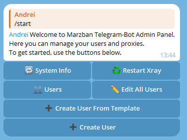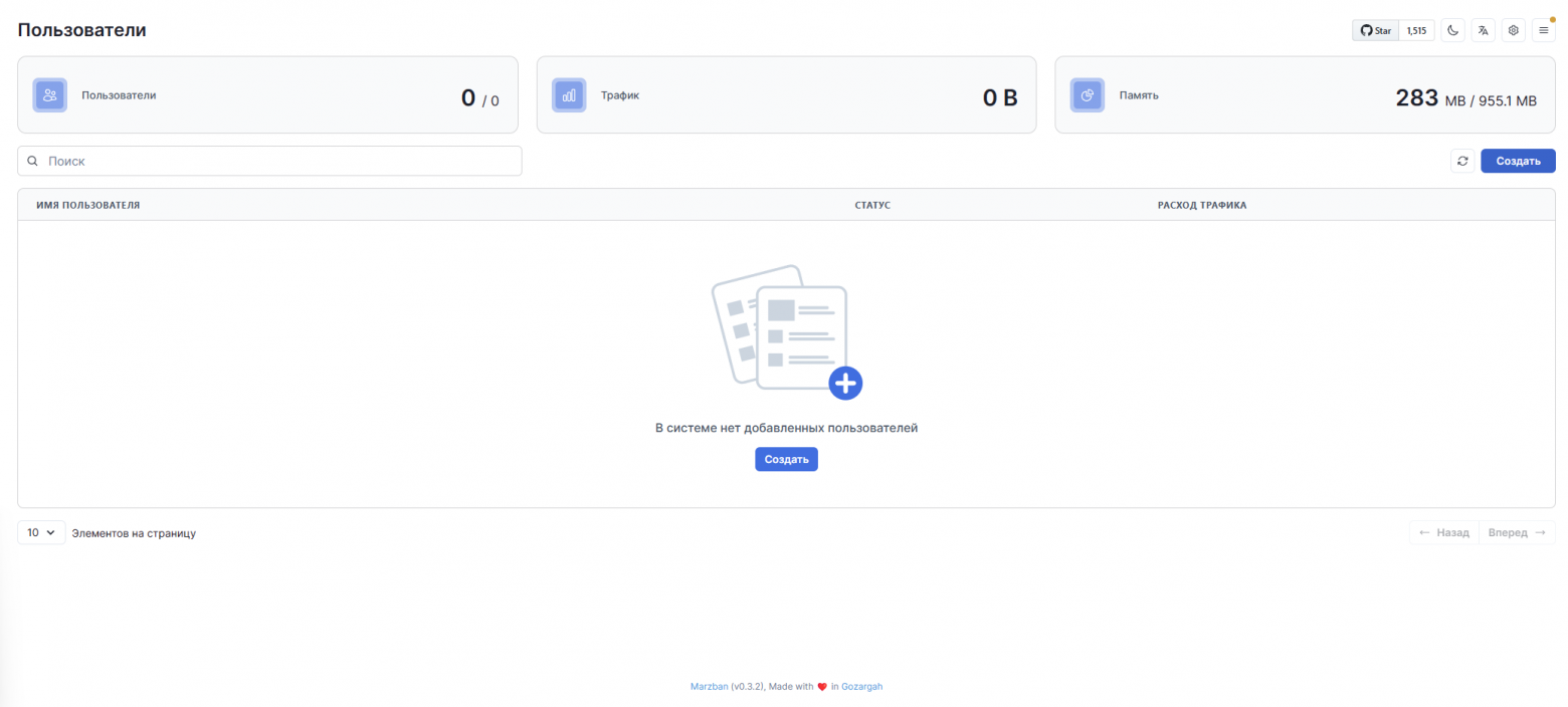 Теперь панель управления Marzban будет доступна на вашем домене или субдомене по https. Вы можете получить доступ к панели управления, введя в адресной строке https://YOUR_DOMAIN/dashboard/